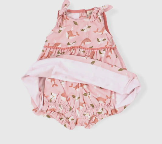 Gardenia Whale Shoulder Tie Baby Dress & Bloomer Set
