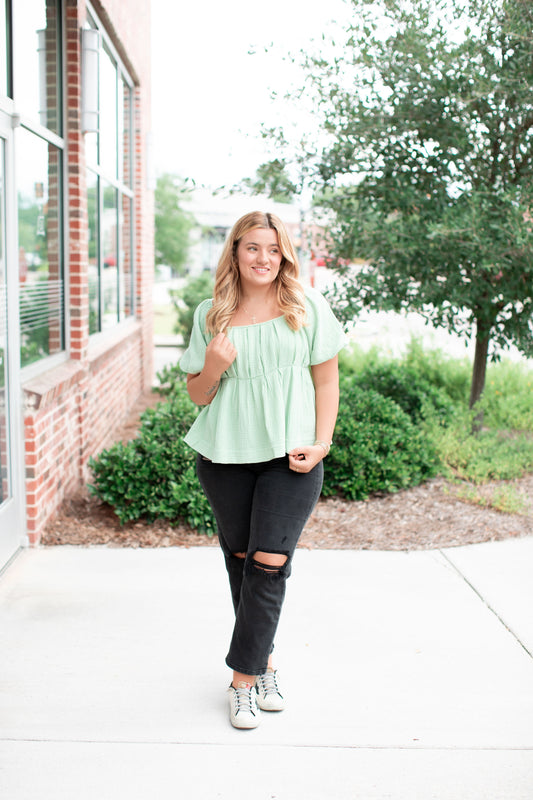 Puff Pleats Vintage Washed Top