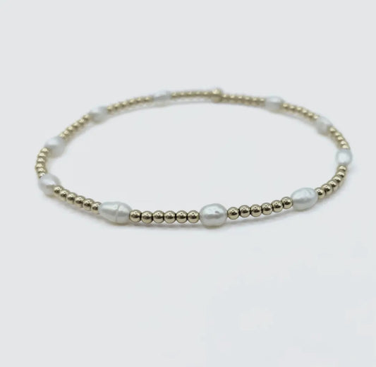 Petite Patterned Rice Pearl Bracelet With 14k Gold-Filled Beads