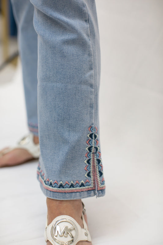 Side Slit Embroidered Jeans