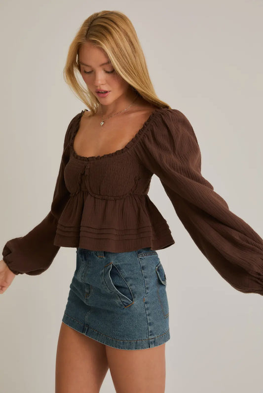 Smocked Long Sleeve Top