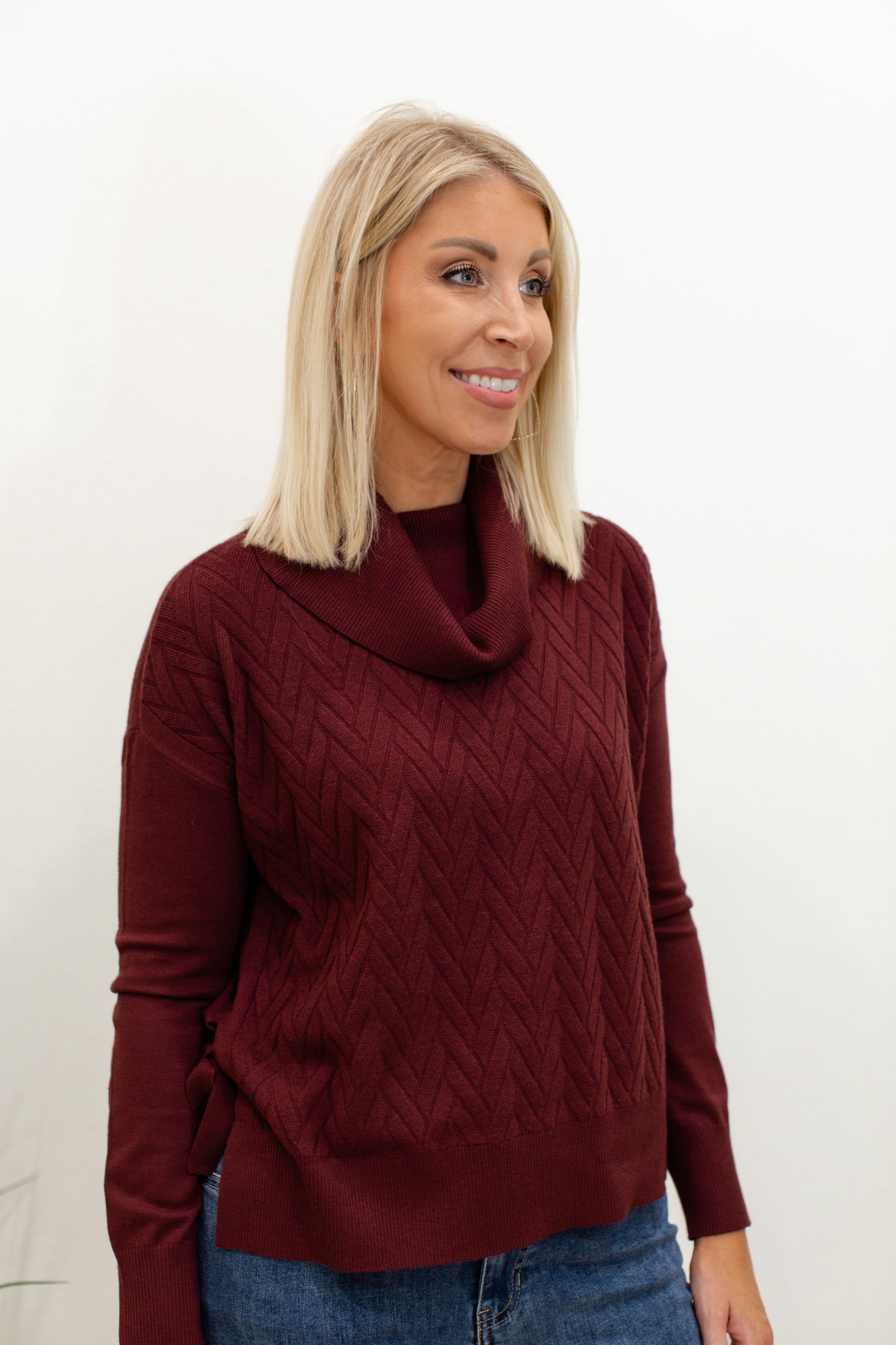 Cabernet Cowl Neck Sweater With Side Slit And Tie details