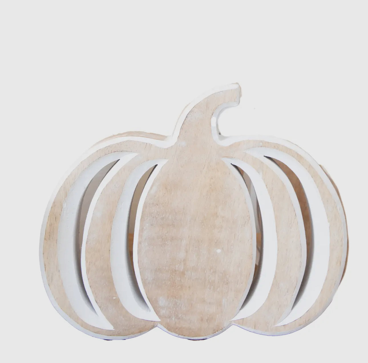 Add a touch of rustic charm to your décor with this small whitewashed wood pumpkin. Its subtle, weathered finish brings aAdd a warm, rustic touch to your décor with this small whitewashed wood pumpkin. Its subtle, weathered finish brings a cozy, farmhouse charm to any space. Perfect for autumn displays or year-round accents, this lightweight pumpkin is easy to place on shelves, mantels, or tables, creating a welcoming atmosphere effortlessly.